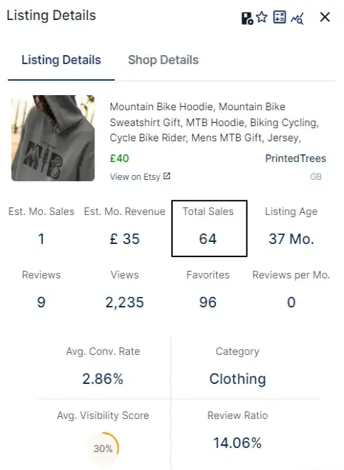 Given that Etsy doesn’t provide sales data via its API, it’s great to see that Everbee have found a way of providing pretty accurate sales data.