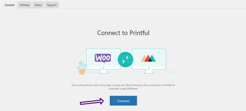 - The Printful plugin checks two other settings that it needs. If they are ok, you will see the screen below and you can simply click Connect (as shown below).