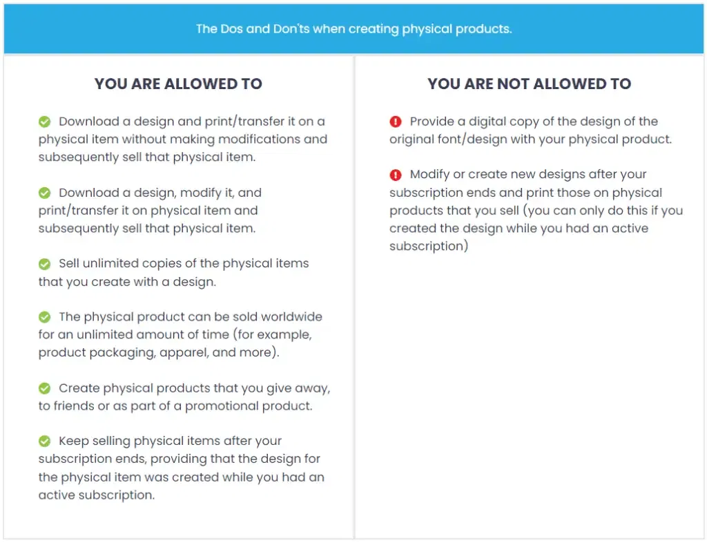 Full commercial use allows users to create designs and products for sale, with some limitations i.e. you need to use the assets and create your own new design.