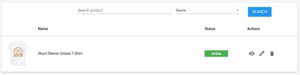 Now, log back into your Launch Cart store and go to Products in the main navigation menu. On the products page, you will see all the products you have in your online store and their status, as shown below.